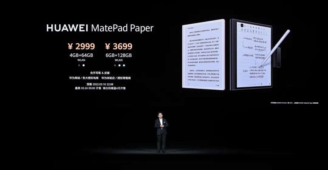 MatePad Paper 提供了两个版本,64GB,2999 元,128GB,3699 元。