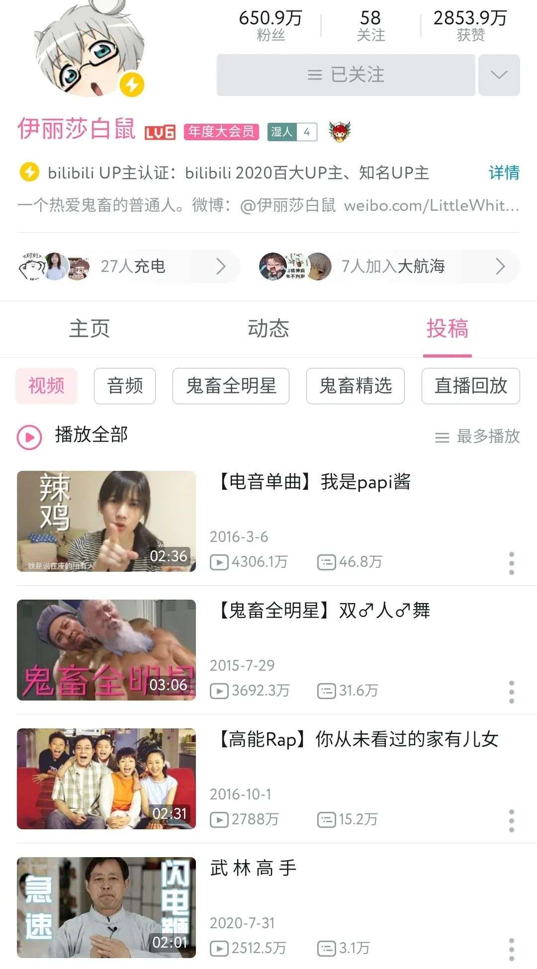 其9年来,仅凭借不到80部鬼畜作品,就获得了近650万粉丝,约5亿的播放量。全站历史播放前十的视频里,他曾一人独占两席。