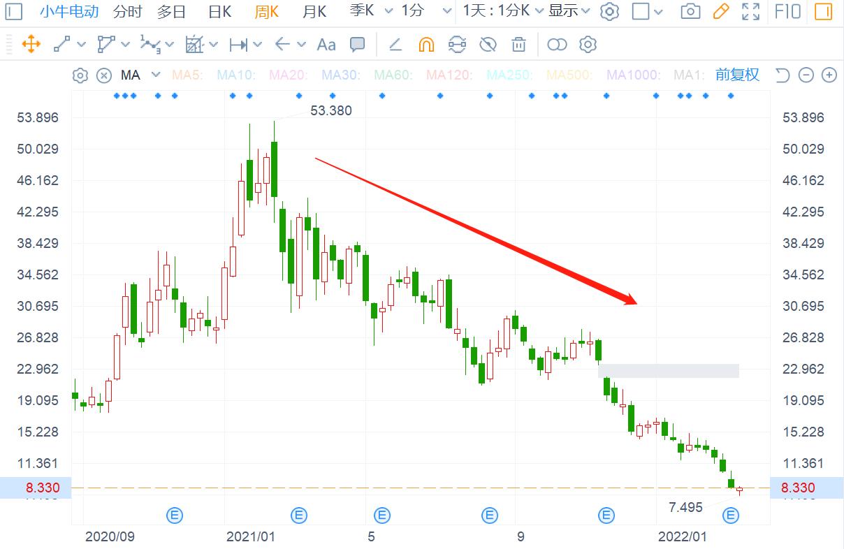 需要注意的是,自2021年以来,小牛电动的股价似乎便按下了回落的开关,股价一路下行,截至目前其股价已累跌近70%。