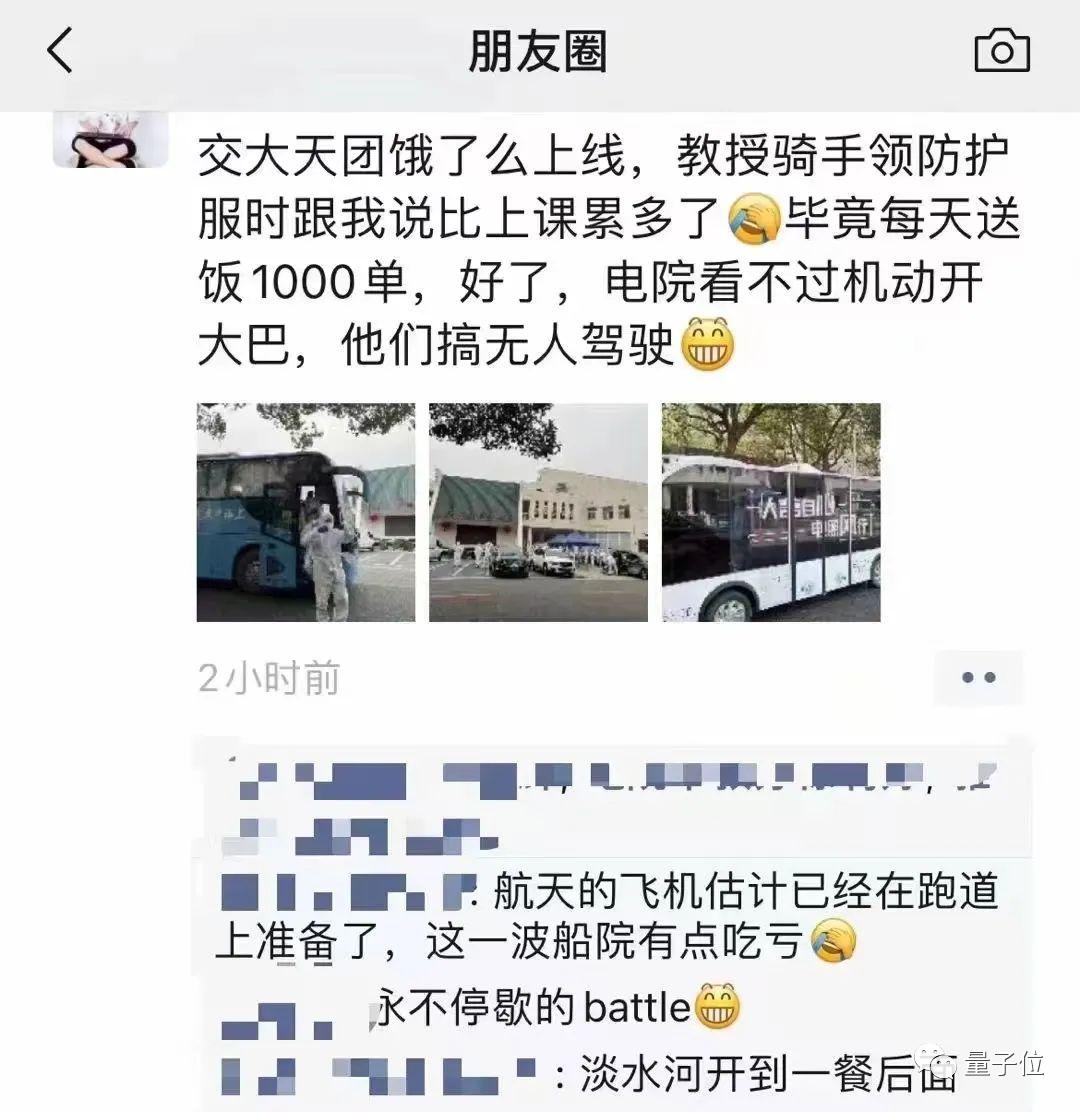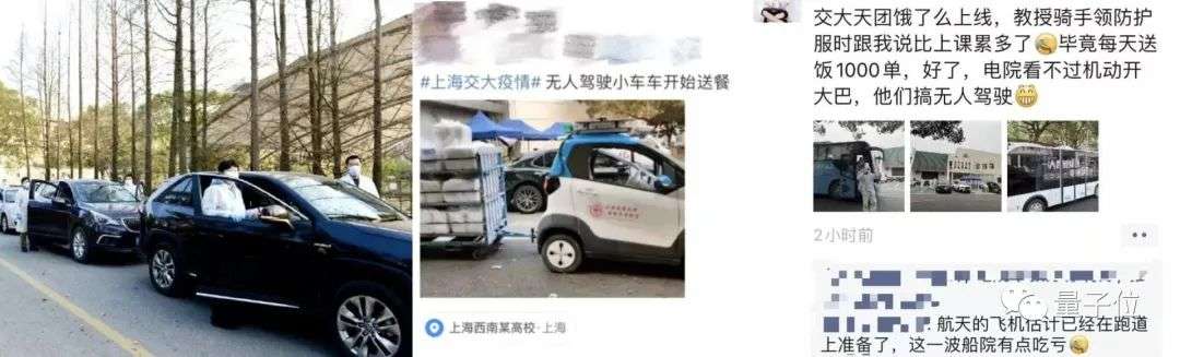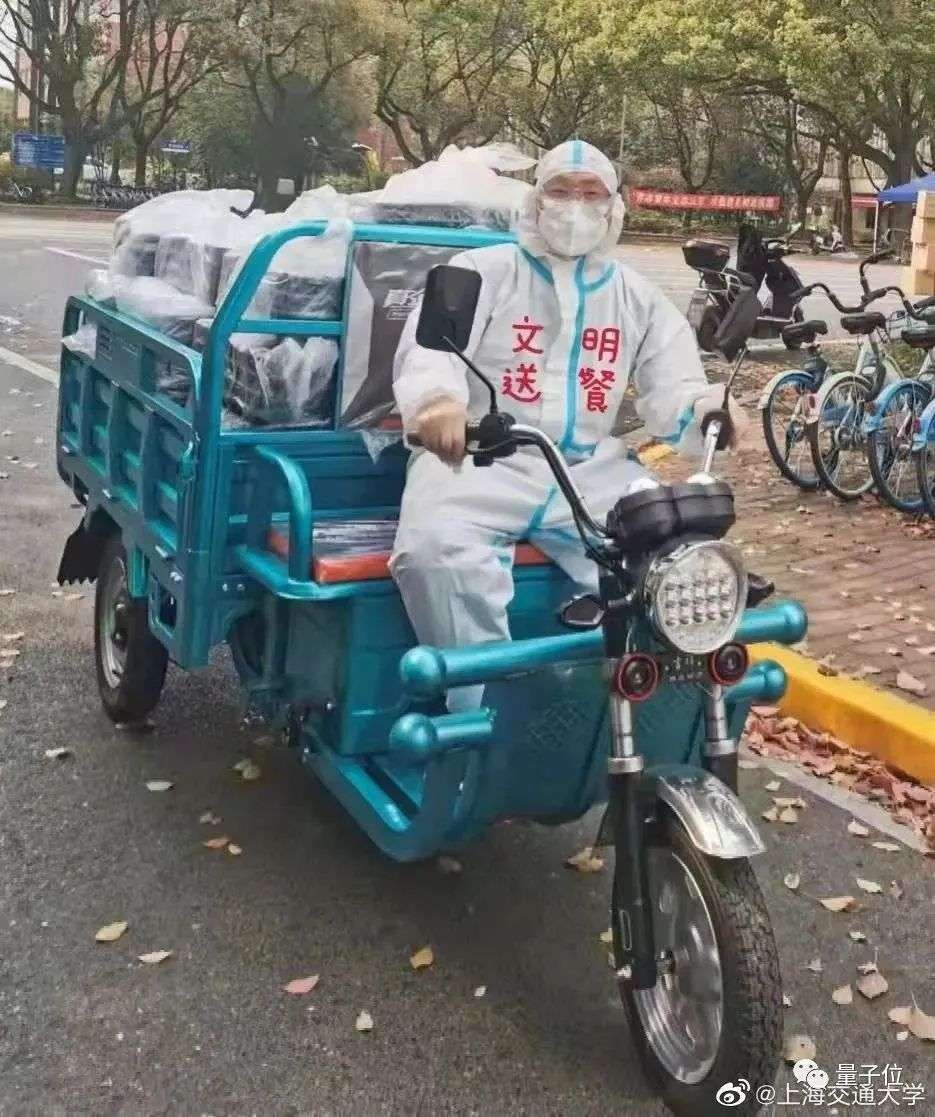于是从第二天开始,老师们就把更新迭代了配送工具。不仅加上了可以在校园里穿梭自如的三蹦子,还把自动化系自研的无人车也开了出来!