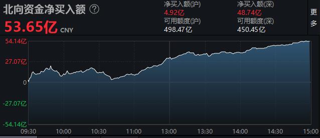 今日收盘,A股三大指数集体收涨,沪指涨1.4%,深成指涨2.41%,创业板指涨2.87%;房地产、医药、建材板块领涨,电力、海运板块走低;北向资金净买入53.65亿元。