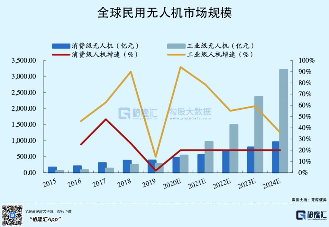 比起消费无人机的渗透度,工业无人机显然还没那么大众化,但它的成长空间确实充满“黑马气质”。