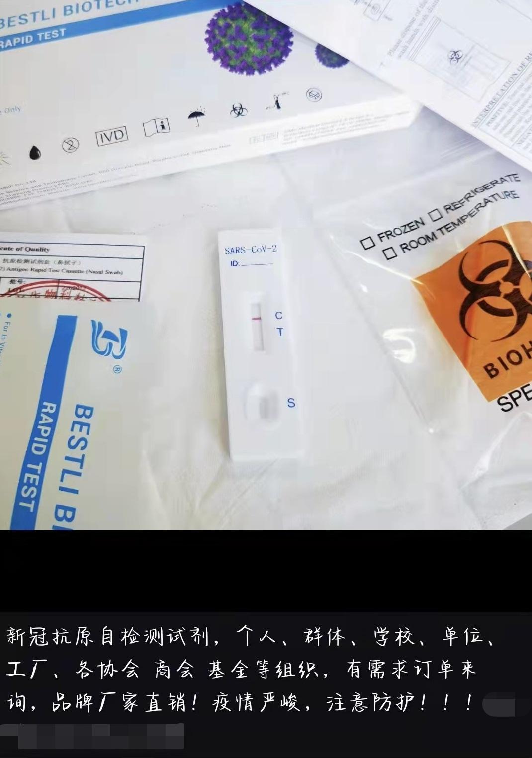 △ 一位杭州朋友发在朋友圈的新冠抗原自检测试剂产品