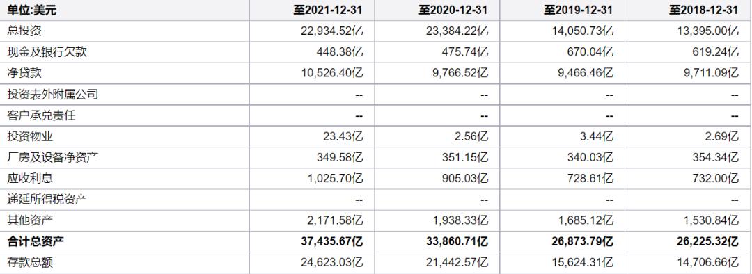 根据最新公布的2021年财报,摩根大通2021年总资产已经高达3.74万亿美元,总存款达2.46万亿美元,对外投资达2.29万亿美金。在资本市场上摩根大通也表现不凡,截至最近一个交易日,其市值高达4086.69亿美元,力压美国银行,是全球市值最高的银行机构,也是仅次于伯克希尔位列市值第二位的金融机构。