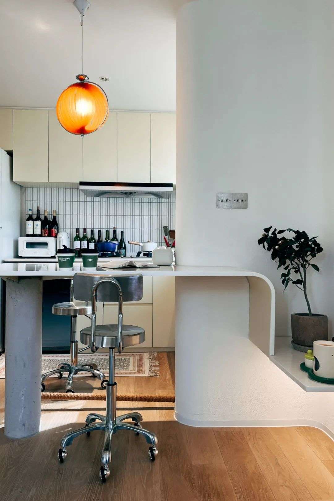 2、如果空间较小,或硬装是比较开放的,家里没有很封闭的工作室,可以考虑用隔断帘、屏风、落地植物做围挡。