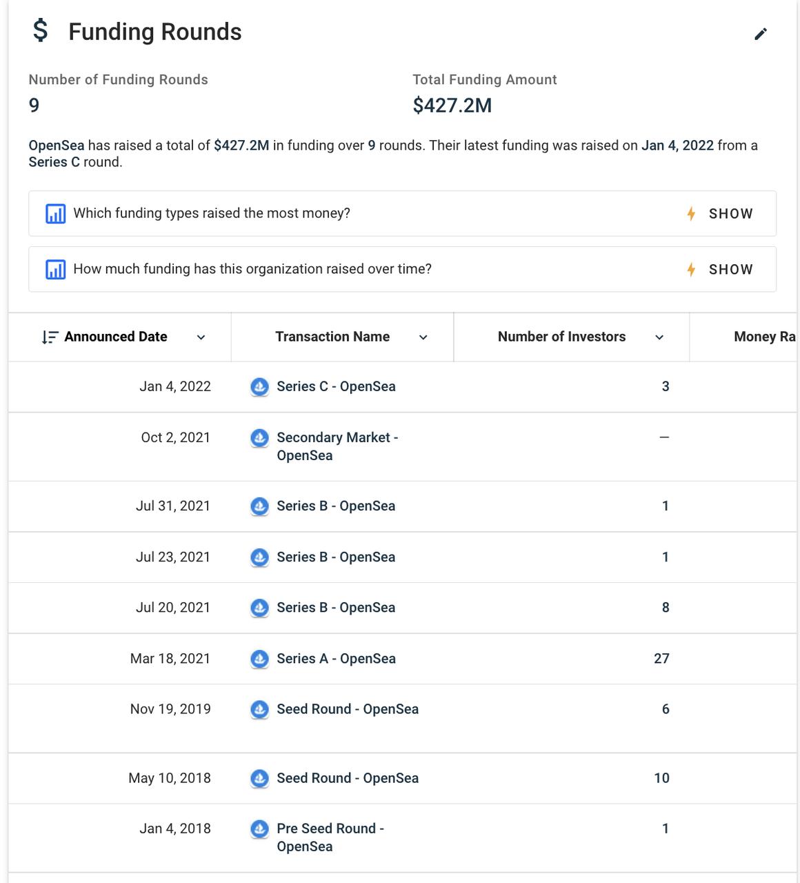 图 | OpenSea 快速融资节奏 来自:Crunchbase