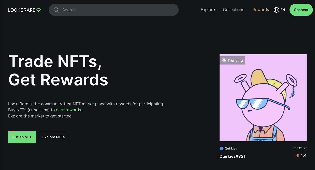 《硅谷101》:OpenSea 谋求上市的新闻引发了轩然大波。因为币圈有自己的融资方式,即使不上市,通过发币的方式也可以募资。这个时候跳出来的新去中心化 NFT 交易平台 LooksRare 的讨论度很高,拿 OpenSea 当靶子。LooksRare 想要和 OpenSea 对抗,你怎么看它的筹码跟胜算?