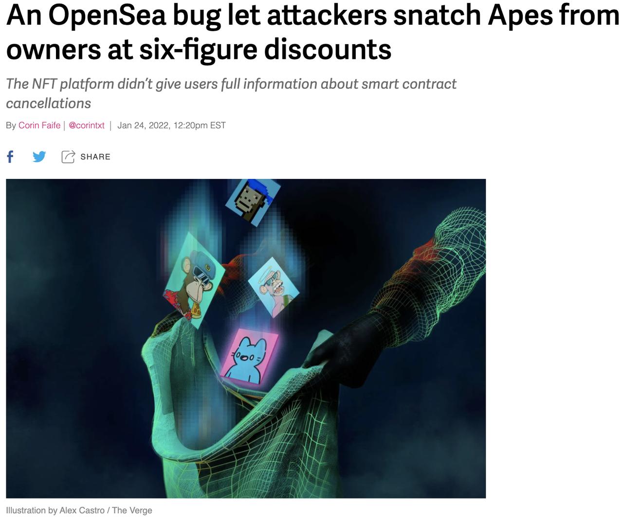 图 | OpenSea 代码 bug 导致卖家 NFT 以低价被买走 来自:TheVege