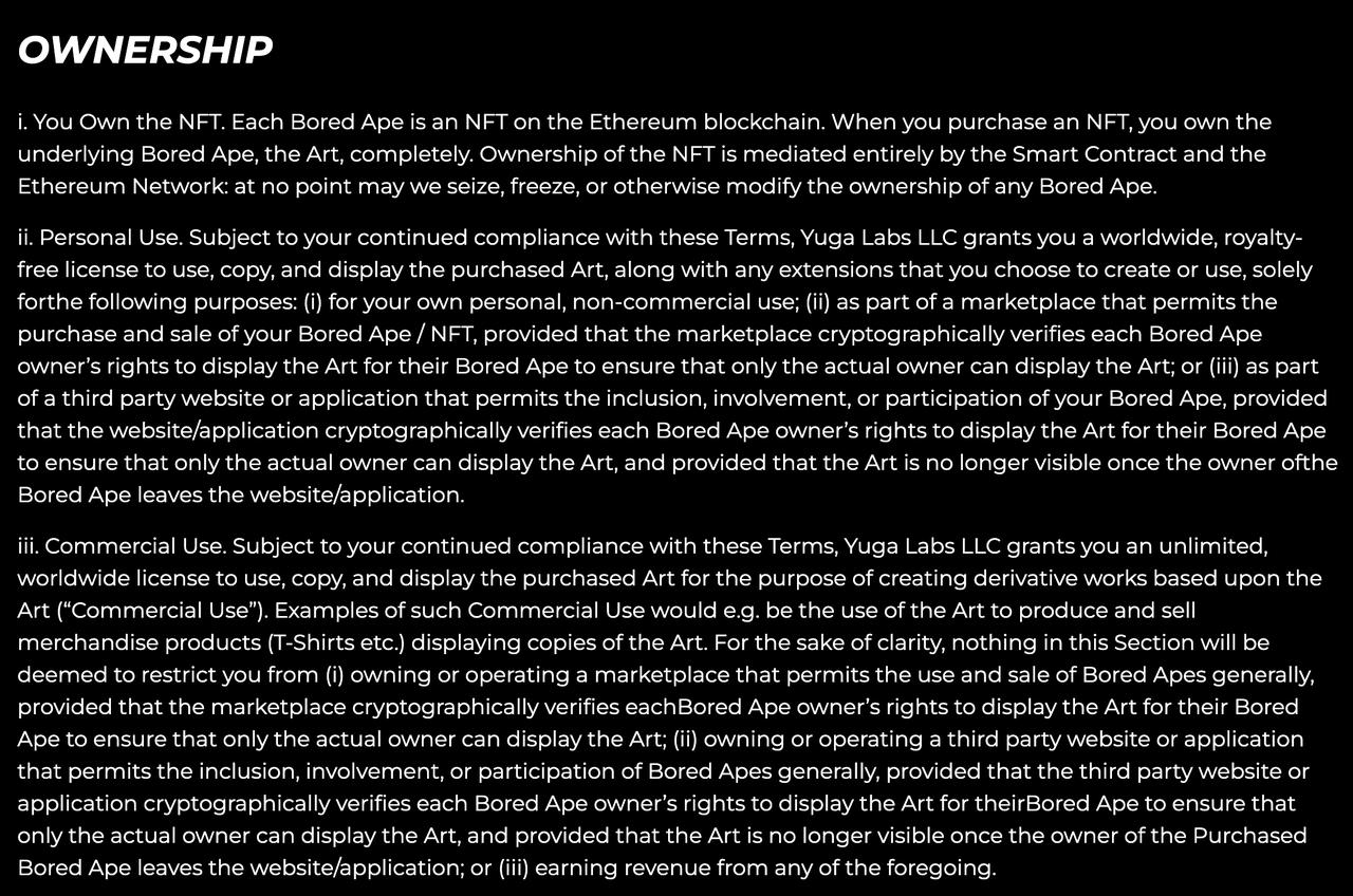 Mohan Zhang: 先不说他的形象设计,包括网站都做得很不错,无聊猿当时有一个非常重要的噱头,他承诺了一件事情——你买了这个你就拥有他的版权。这个 CryptoPunks 是没有做的。无聊猿是第一个做这样承诺的人。