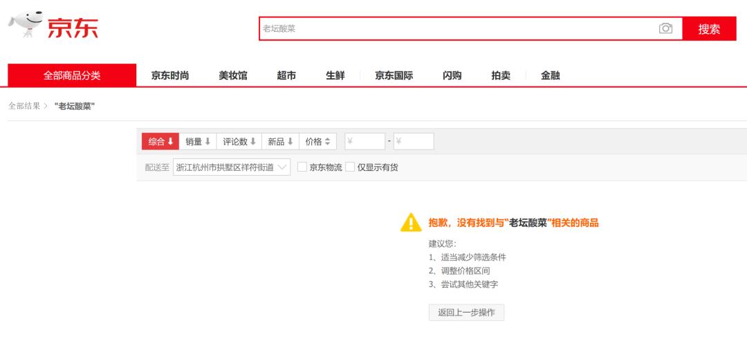 这件事儿严重到啥程度,你现在在京东淘宝拼多多搜老坛酸菜四个字,直接显示无结果。