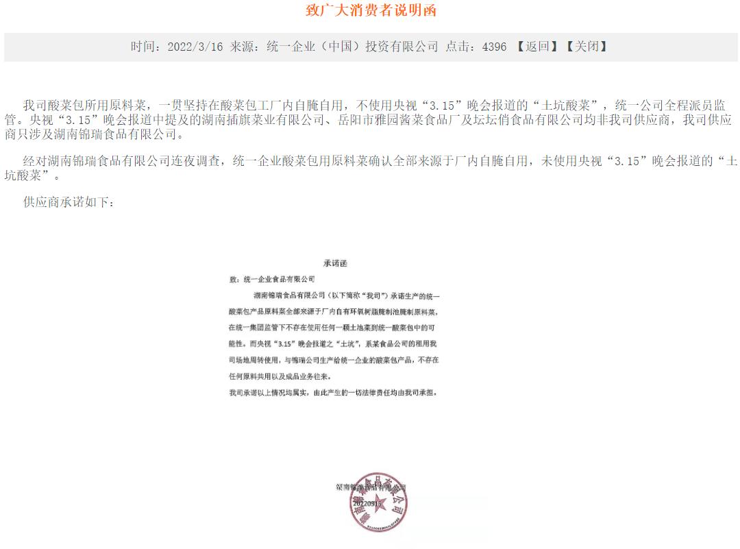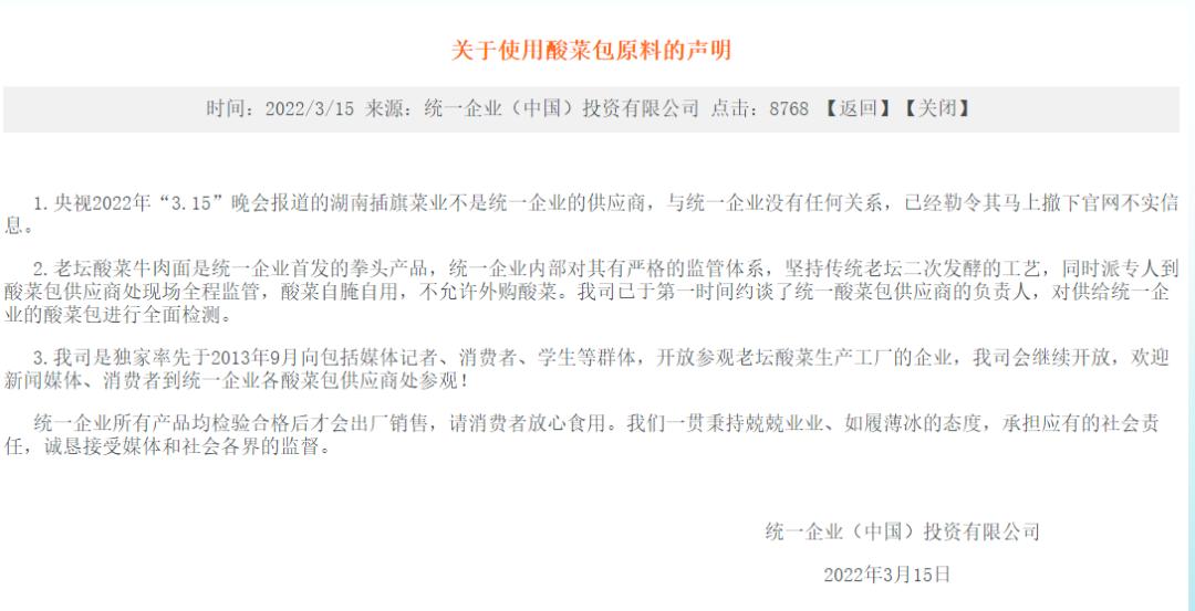 康师傅倒是老老实实承认了,发声明说自己终止了和其中的湖南插旗的合作。