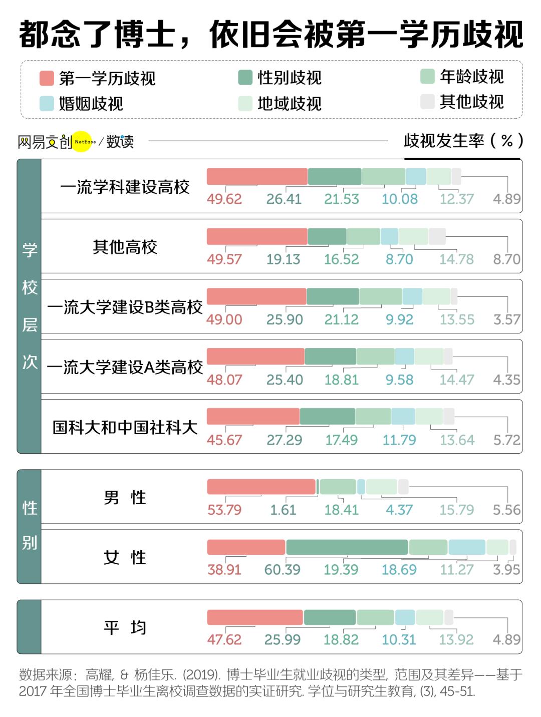 根据一项对 2017 年全国博士毕业生进行的离校调查研究表示,即使到了博士求职时,第一学历仍然是他们面临的最大障碍, 47.62% 的博士生都因为本科学历吃过苦头。
