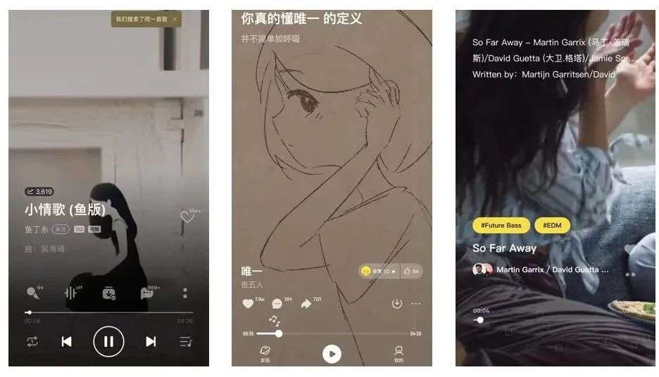 那么用户有什么理由再下载一个新的App,并从其它平台迁移过来。算法不是好的答案。豆瓣FM的算法同样被市场认可和推崇过,但结局却很悲惨。如果仅仅是通过算法就能盈利,为什么腾讯音乐和网易云音乐们还要花昂贵的版权费,而不是把每年几十亿以上的版权开支花在算法上?