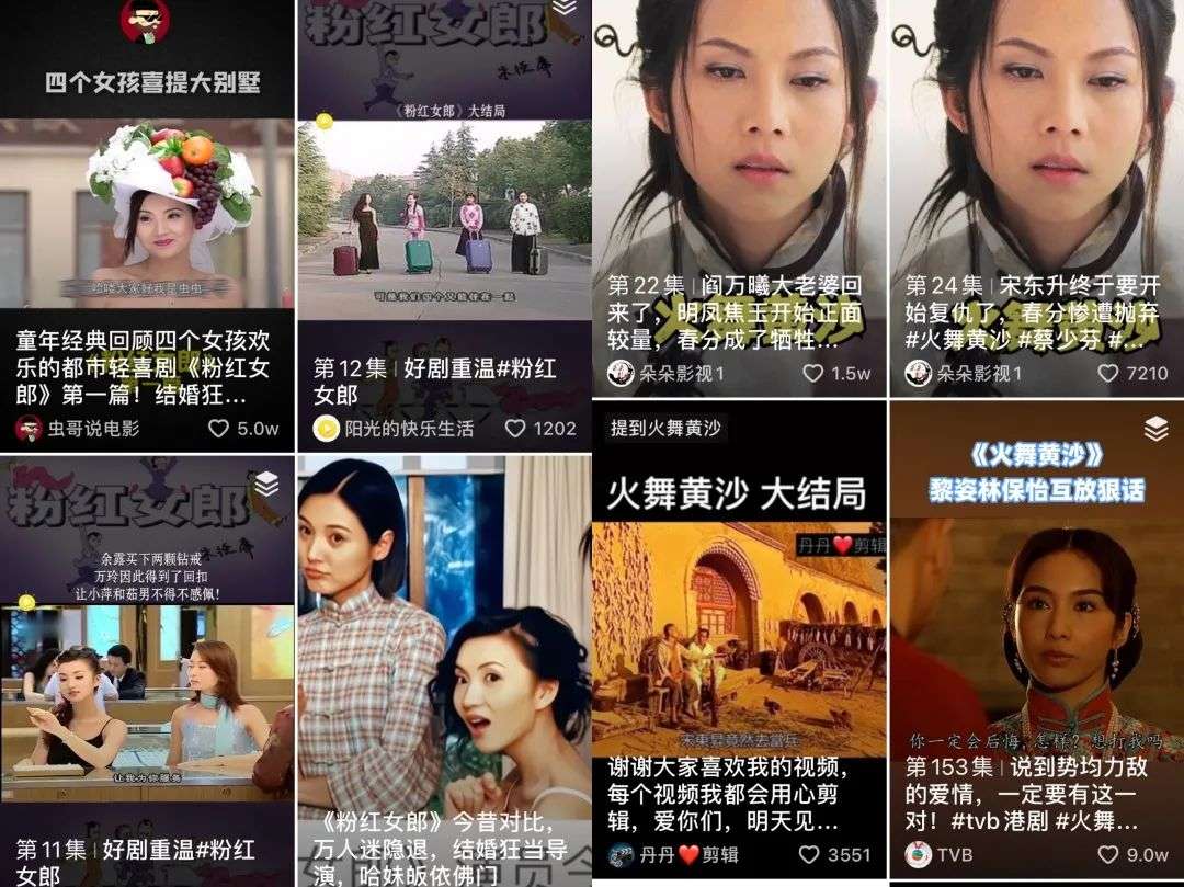 这或许是看中抖音搜狐的一个原因。目前,众多老剧通过剪辑、解说等形式,在抖音上重新被人熟知,比如2002年的《粉红女郎》、2009年的TVB剧《火舞黄沙》等老剧,相关片段在抖音上有着不错的播放数据。