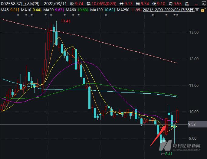 截至3月17日收盘,巨人网络股价上涨7.14%,报收10.05元/股,总市值为203亿元。