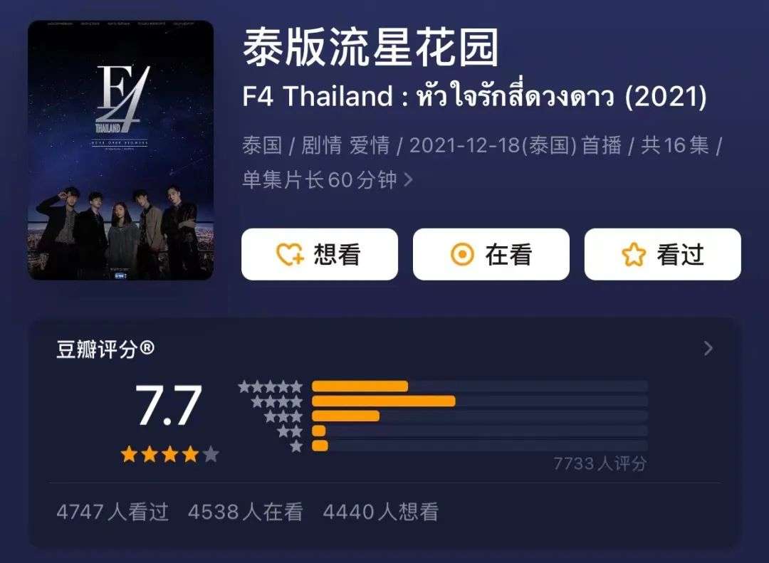 这部曾经风靡亚洲,被中日韩美四国翻拍过的经典IP,最近又有了新的版本。来自泰国的新版《流星花园》目前播出12集,豆瓣7.7分,已经超过了2009年的韩国版,成为近年来翻拍评分最高的一版。Ren(花泽类)扮演者在上周开通了微博,已经收获了超过70万粉丝。