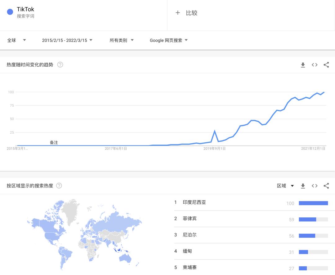 (TikTok谷歌搜索趋势 图源:Google Trends)