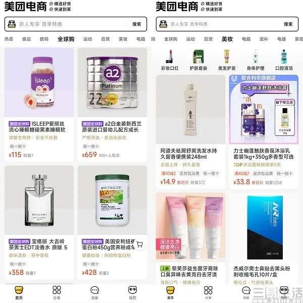据了解,品牌自营专营店的模式类似于“京东自营”,商品将由美团电商方面发货、并负责售后服务;而“全球购”则是销售海外商品的商家店铺专区,其中集合了保健品、护肤片品等各类海外商品。由此也不难发现,美团电商此次的目标或是将美团好货打造成为一个综合类电商平台,不仅涵盖了日用品、食品等高频的商品,还加入了诸如3C数码、美妆、海外商品等品类。