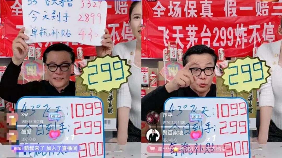 酒水直播间从不缺乏入局者,2021年当当网的创始人李国庆开启酒水直播,以低价形成竞争力,厂商指导价498变为直播间到手价99元,直播间挂着“飞天茅台299炸不停”“全场保真,假一赔三”的横幅。正如李国庆所讲:“互联网时代没有价格敏感区域和价格敏感商品,全网比价很透明。所以,价格竞争是残酷的。”