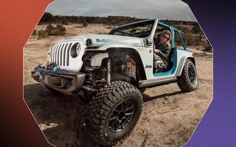 Magneto和其他电动车一样有电动机和电池,但它也有其他大多数电动车没有的东西:六速手动变速器。然而,配备手动变速器的电动车不需要的部件是离合器,所以吉普公司没有采用牧马人概念车的第三个踏板。毕竟,电动马达不会失速,而且在电动车中换挡基本上是可选的。驾驶者仍然有档位选择的好处(和乐趣!),但还有自动变速器的无离合器操作的便利。