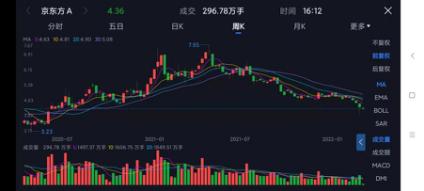 但吊诡的是,尽管国际份额不断攀升,又迎来了最强财年,京东方的股价似乎也没有应声大涨,反而是持续回落,已经从至高点每股7.5元下滑至4.36元。