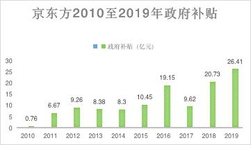 以下为京东方2010年至2019年之间每年的政府补贴。这十年间京东方所获政府补贴高达119.73亿元。扣除掉政府补贴,京东方在这十年的净利润时有亏损。