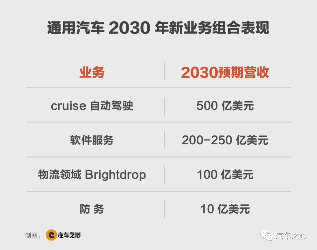 图示:通用汽车 2030 年新业务组合表现
