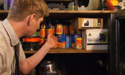 在这个避难所里,colinfurze屯了很多生活用品,各种罐头,以及用不完的卫生纸: