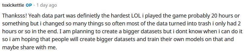 不过,如果能让大家一起来玩的话,说不定有同好会做出更大的训练数据集、训练自己的模型,然后再共享给他