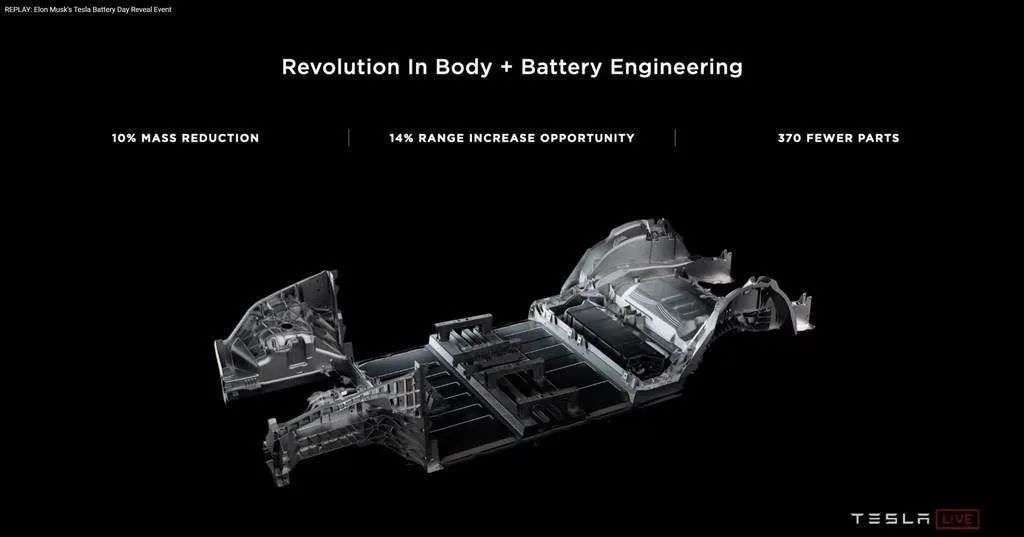 在 2020 年 9 月的电池日上,特斯拉除了发布了 4680 电芯外,还发布了全新的整包封装技术 CTC(Cell to Chassis),也就是取消电池包(Pack)设计,直接将电芯或模组安装在车身上。马斯克曾表示,采用了 CTC 技术后,配合一体化压铸技术,可以节省 370 个零部件,为车身减重 10%,将每千瓦时的电池成本降低 7%。