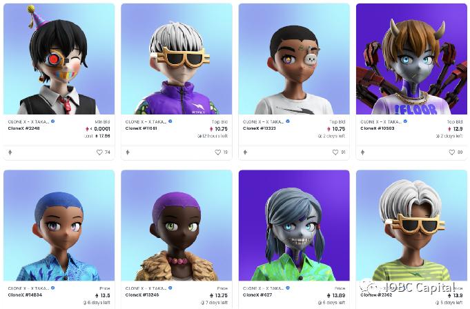 虚拟人项目,由RTFKT和村上隆共同推出。Clone X具有三维模型文件,可以引入多个元宇宙平台。