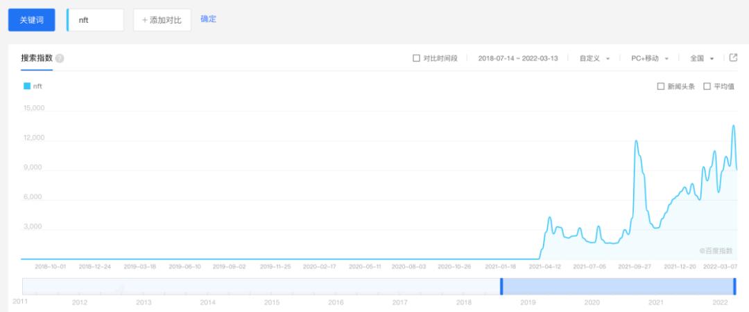 从上图可见,NFT萌芽于2017年末,经过一轮熊市的沉寂期,爆发于2021-2022年。