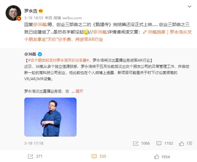 就目前来看,这个版本的说法得到了罗永浩本人的认可。其还回复称:“创业三部曲之二的《甄嬛传》完结篇还没正式上映……创业三部曲之三就已经建组了…虽然名字都没起。”