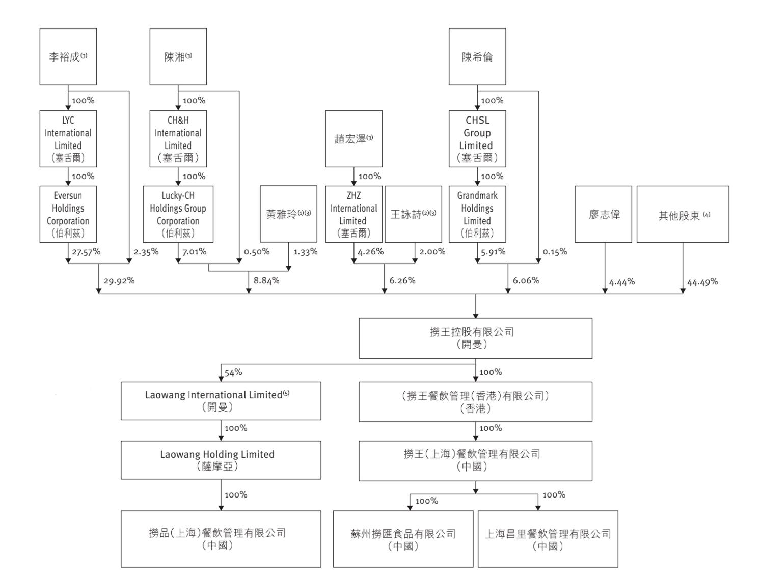 事实上,捞王一直在为上市做准备,作为一家有中国台湾基因的餐饮企业,其本打算在中国台湾上市,后改道香港。根据招股书,李裕成、陈湘和黄雅玲夫妇、赵宏泽和王咏诗夫妇、陈希伦、廖志伟共占比55.51%。