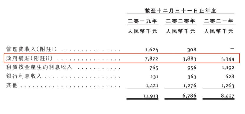 接着拆解成本结构可发现,食材占36.8%,人工成本占比29.9%,租金占14.4%。三项成本居高不下,挤压利润空间,到2021年度净利润仅为1396万元,利润点1.1%。值得注意的是,这1396万元净利润中,还有534万元的政府补贴。