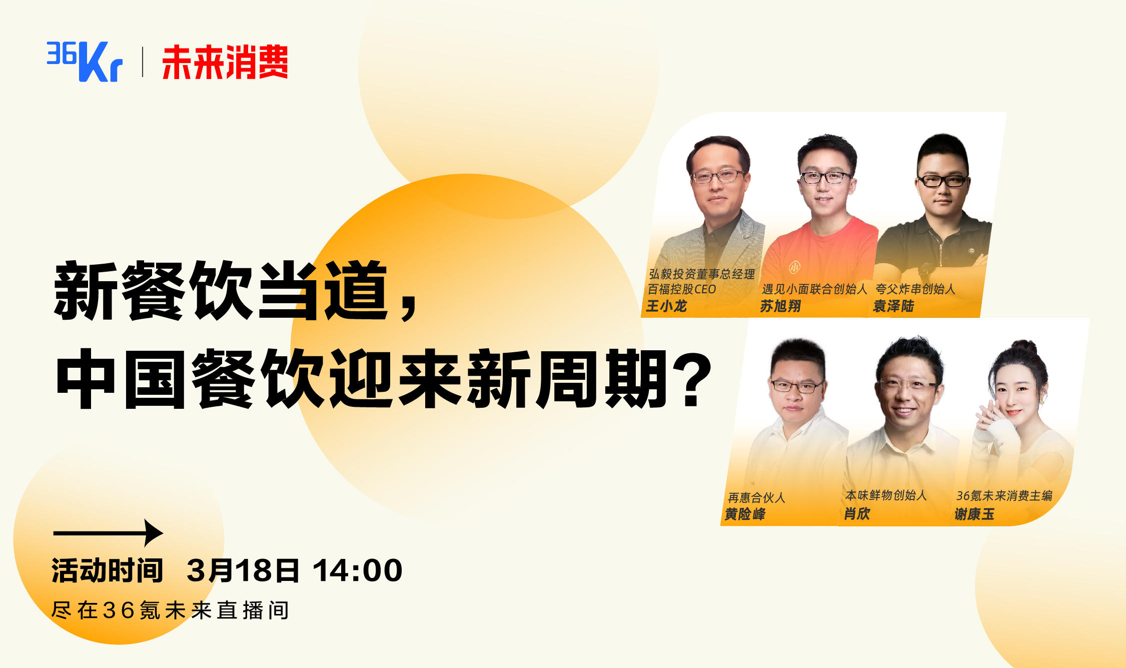 3月18日,36氪未来消费举办了主题为“新餐饮当道,中国餐饮迎来新周期?的「新餐饮线上论坛」,邀请五位顶级投资机构高管、新餐饮行业头部玩家共同探讨在流量阵地火热、市场瓜分细微化的趋势下,新餐饮的变化和未来。