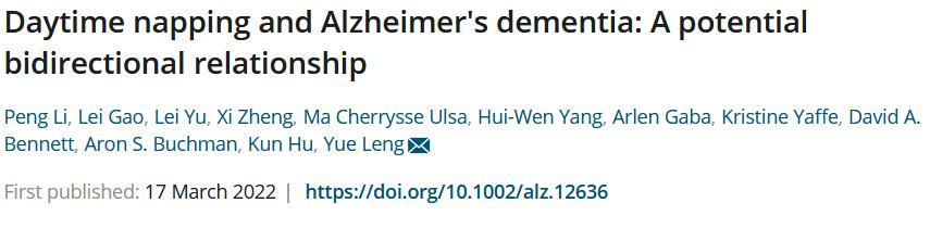 2022年3月17日《阿尔茨海默症协会杂志:阿尔茨海默症与失智症》上发表的论文称,老年人若在正常睡眠时间以外每天至少打盹或午睡超过1小时者,其罹患阿兹海默症等失智症的风险要高出40%。