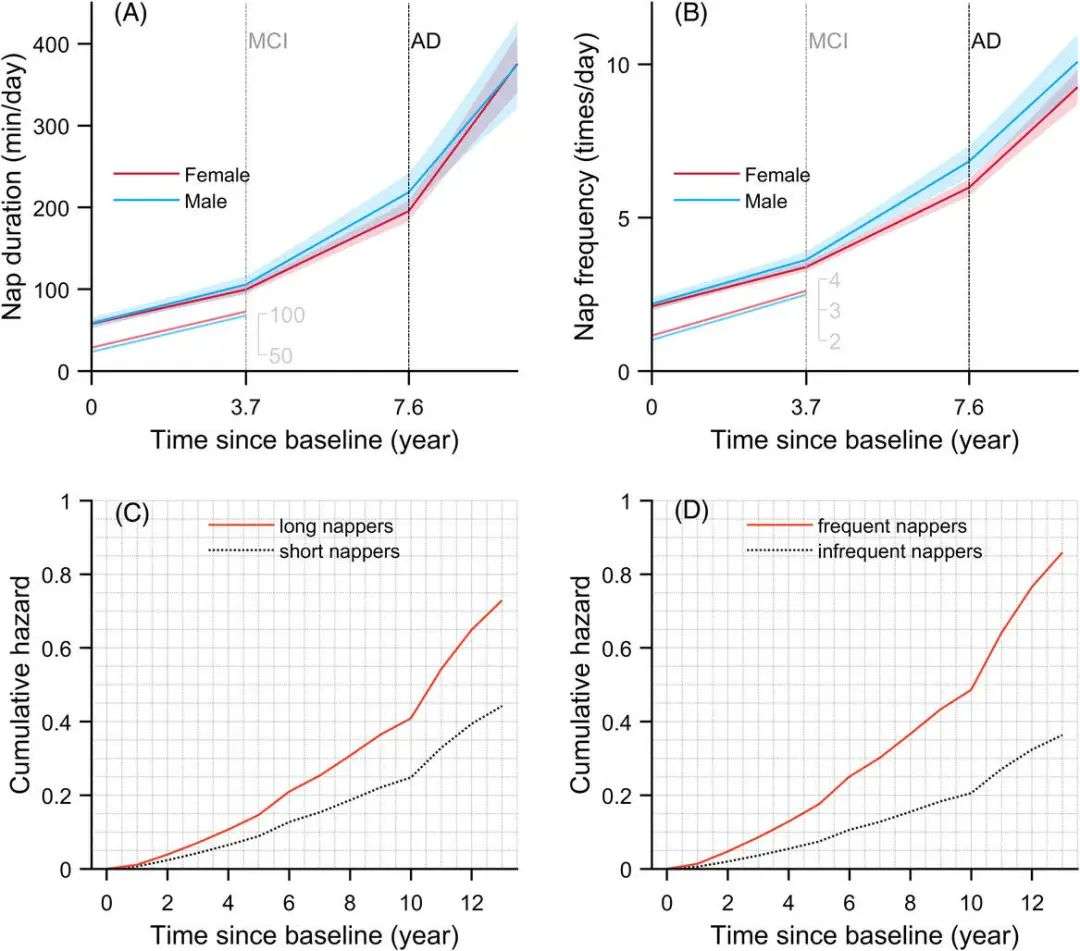 研究者称:「我们观察到的基线时过度日间小睡,与随访期间阿兹海默症风险增加之间的关联似乎是合理的,这可能反映了阿兹海默症病理学在临床前阶段的影响。」