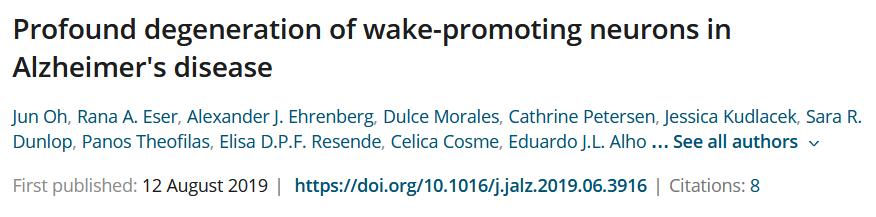 而2019的研究发现,当阿兹海默症开始影响脑部时,Tau蛋白会显著地积聚在患者脑部的清醒促进(wakefulness-promoting)中心,导致白天过度的午睡。