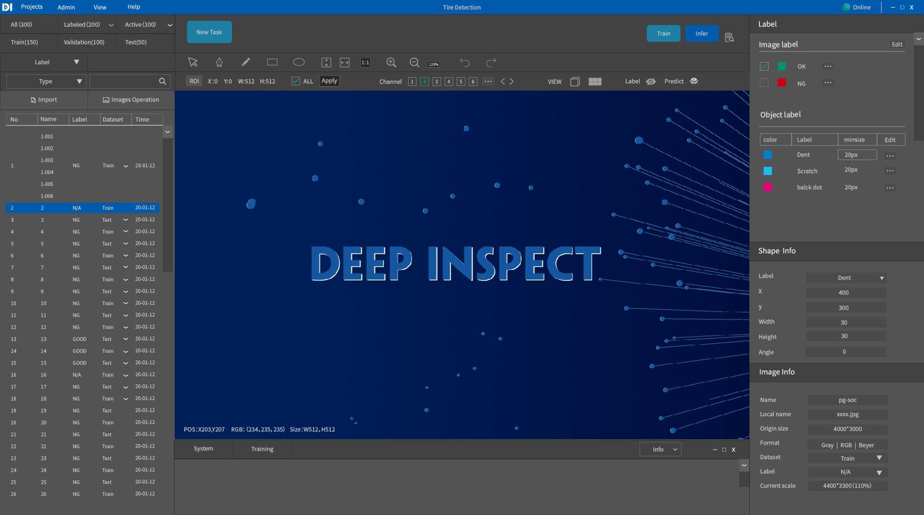 同时根据深视科技相关资料显示,Deep Inspect工具软件拥有对象定位、分割和图像分类功能,能更好地对检测情况进行分析;同时Deep Inspect工具软件无需编程,通过图像导入、标注和自学习即可完成快速部署,检测准确率趋近于100%。同时这也意味着Deep Inspect工具软件能够在多个行业进行独立应用。