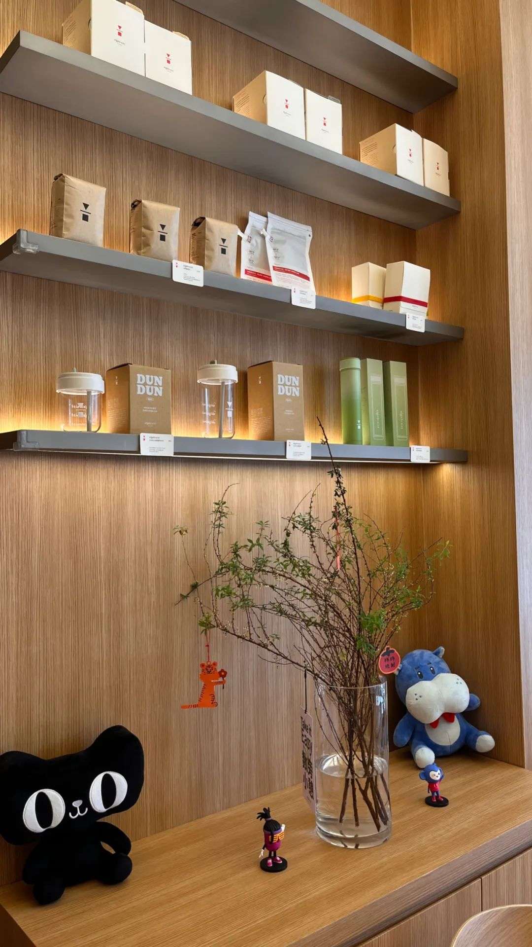 壹览商业也实地观察了一家位于杭州亲橙里购物中心的代数学家。门店周围被各种咖啡馆围绕,包括Tims、COSTA、星巴克以及各种小众咖啡馆。站在远处,代数学家的品牌logo十分明显,走进店内,特有的产品墙摆在最显眼的位置,还有一整面用来摆放周边产品的柜子。