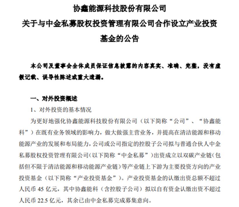 同时,由中金与协鑫能科共同设立的中金协鑫碳中和产业投资基金首期不超过45亿元正式落地。