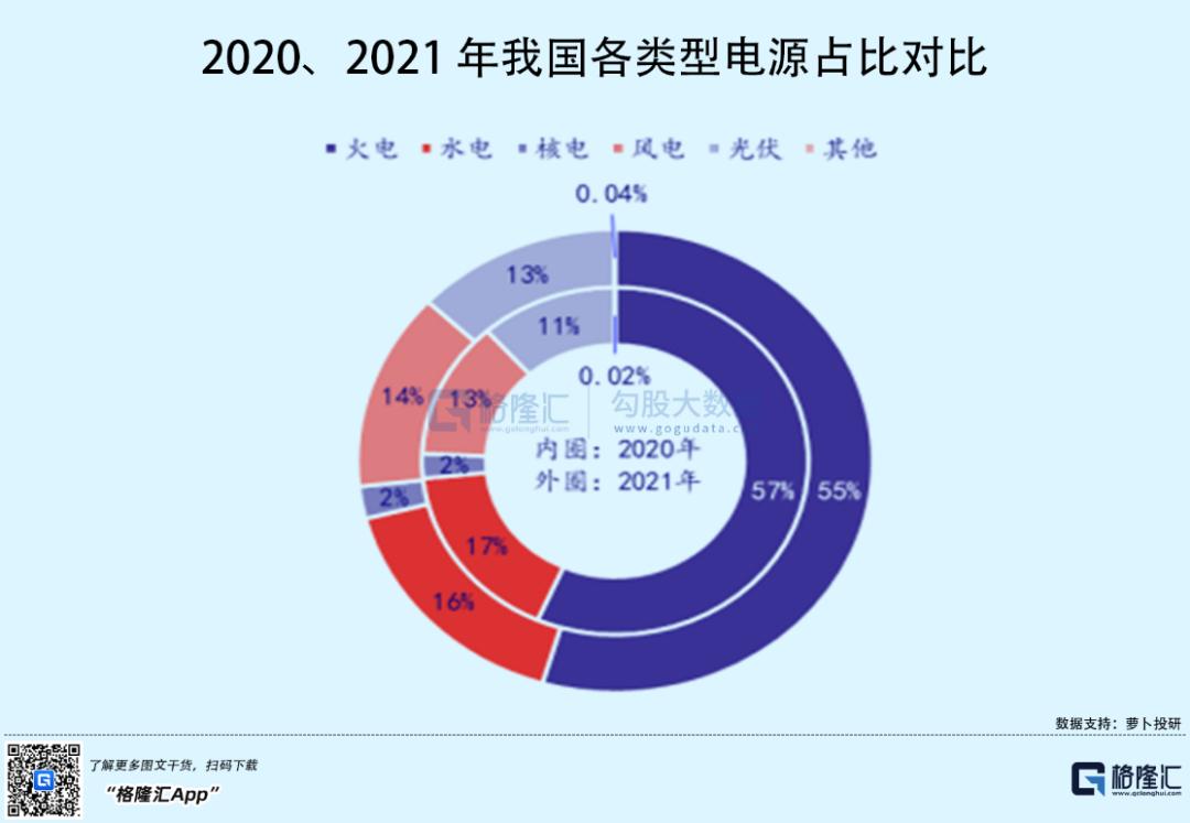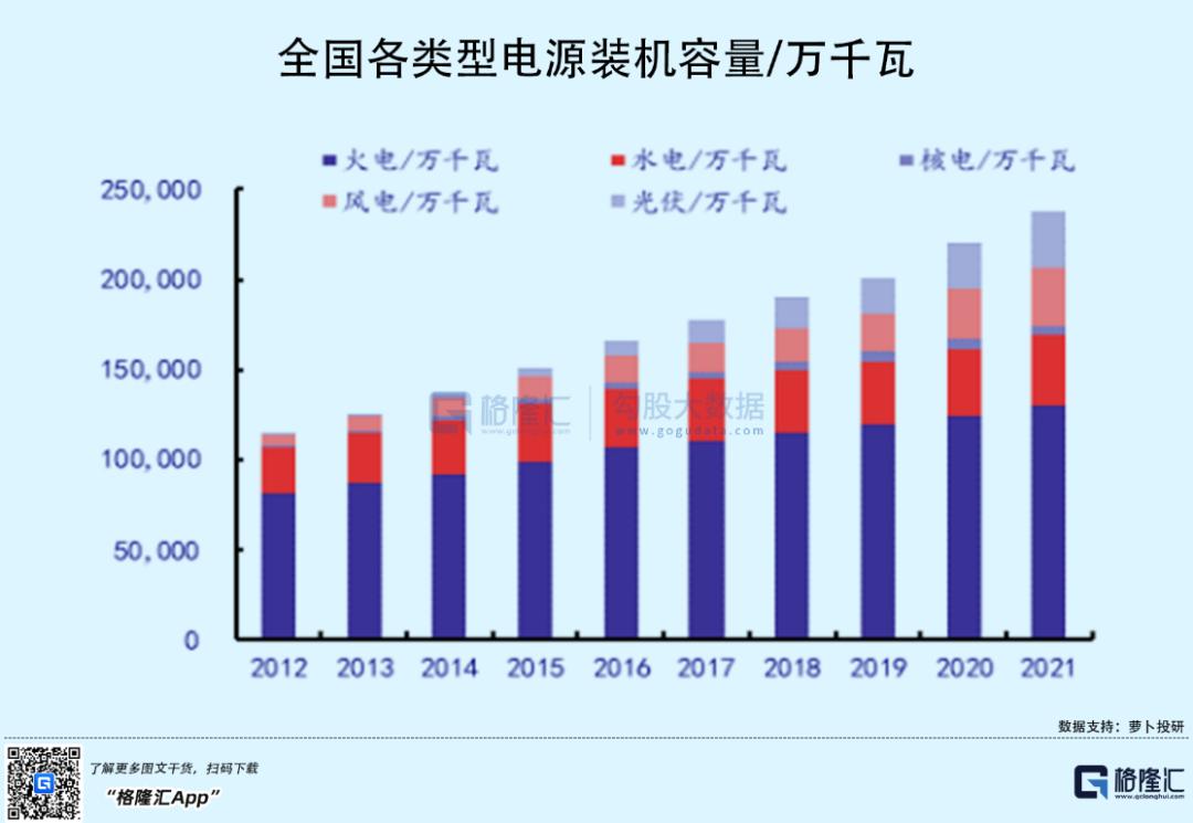 公开数据显示,截至2021年底,全口径非化石能源发电装机容量达到11.2亿千瓦、煤电11.1亿千瓦,占总发电装机容量的比重分别为47%、46.7%,这一次全口径非化石能源发电装机容量首次超过煤电。