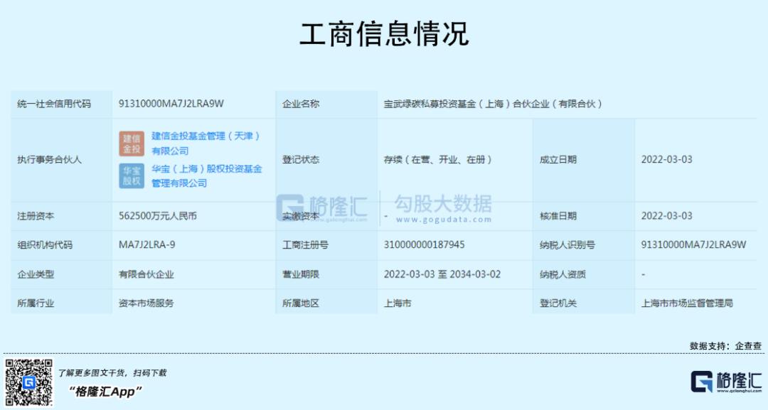 例如,宝武绿碳私募投资基金(上海)合伙企业(有限合伙)在近日成立,注册资本56.25亿元。