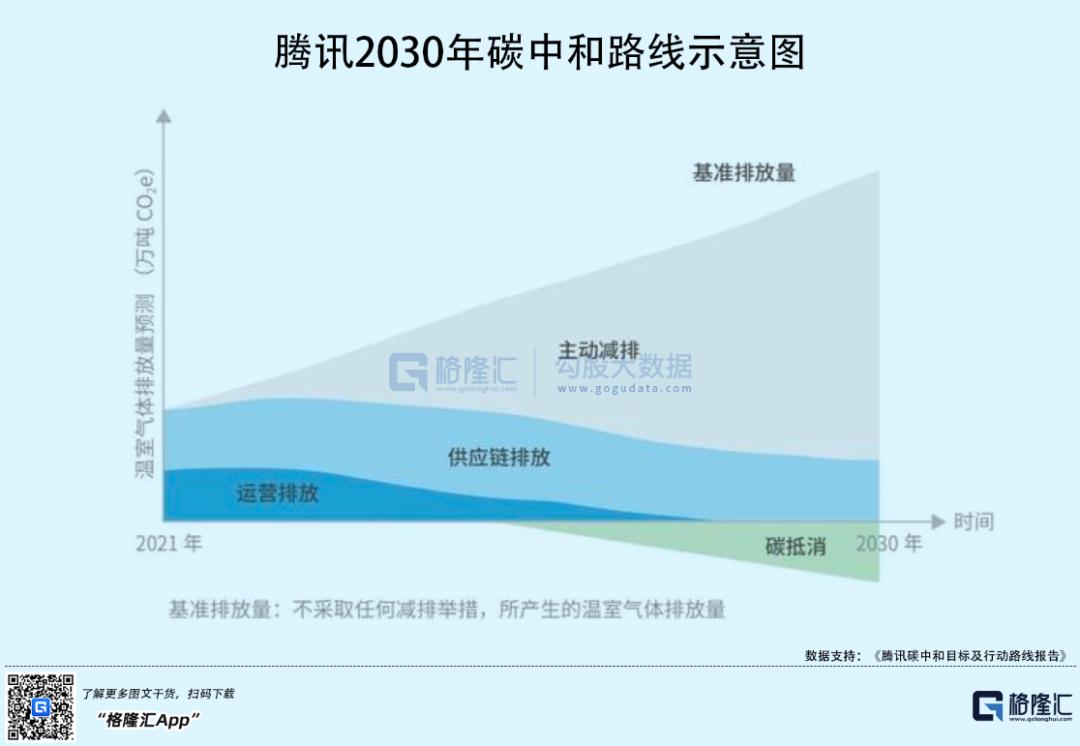 腾讯提出了 " 不晚于2030年实现自身运营及供应链的全面碳中和"的目标,其中,2021年腾讯自身运营和供应链的碳排放总量为511.1万吨二氧化碳当量。