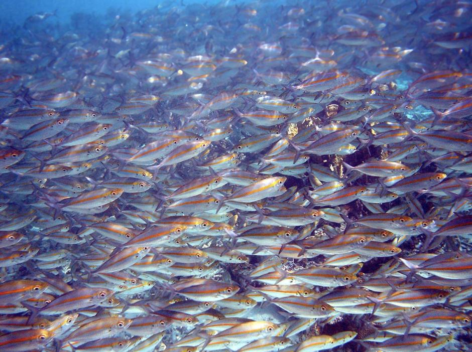 但成千上万的鱼聚在一起,不是更容易被捕食者发现吗?其实不然,海洋环境的光学特性和陆地上大不相同,光线被海水中的物质吸收和散射,导致海里的可见距离极短,因此不管是一条单独行动的鱼,还是一大群鱼,被捕食者发现的最短距离都是一样的。