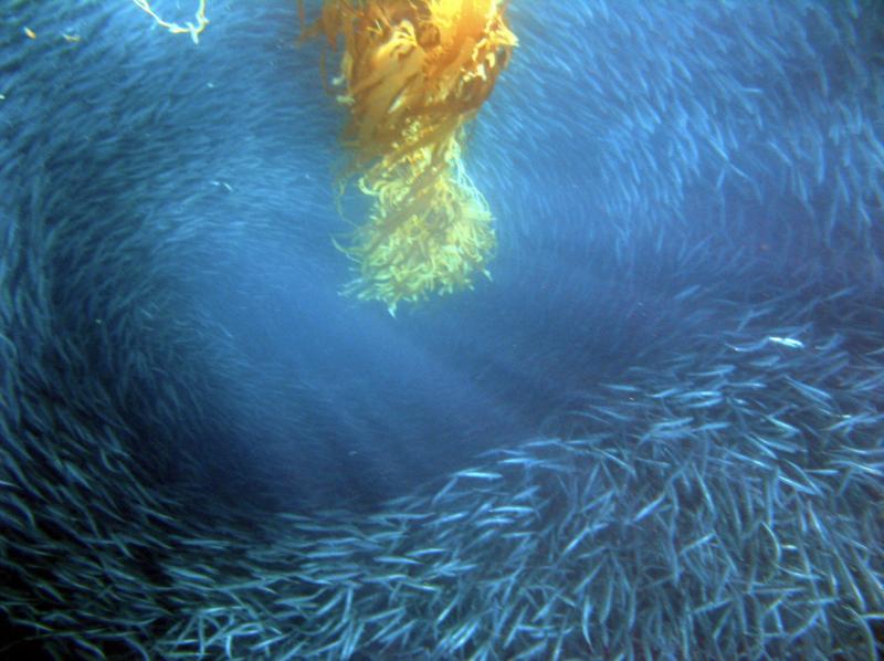遇到捕食者时,沙丁鱼群会形成漩涡形的“饵球”,用来吓跑捕食者 | Ed Bierman / Flickr