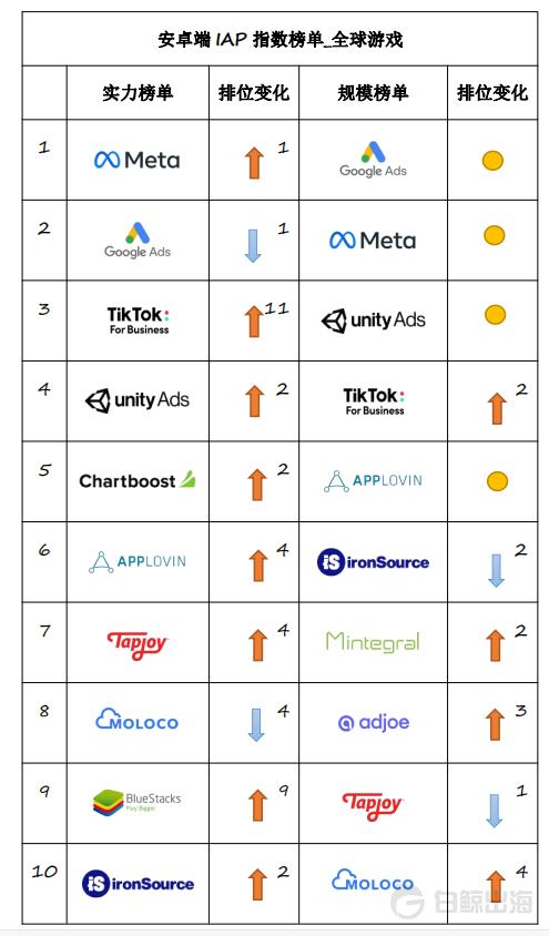 安卓端全行业 IAP——实力榜单大换血,三出海平台跻身双榜单 Top10