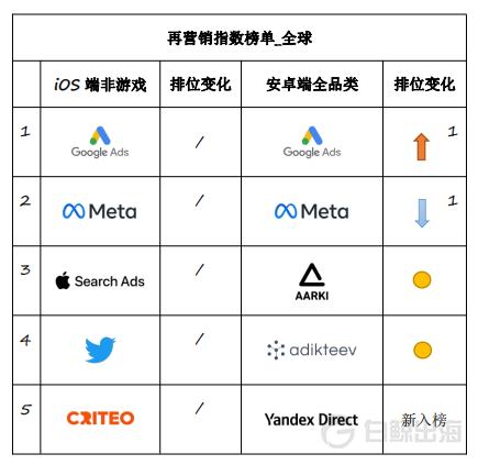 再营销平台有其特殊性,安卓端,AARKI 和 adikteev 一直擅于再营销且排位稳定。读者可适当关注。