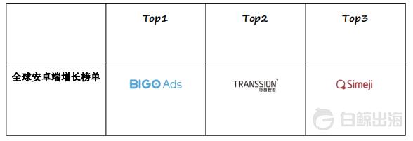 这一次的增长榜单,依然是中国平台领跑,分别是欢聚旗下的 BIGO Ads,传音控股的 TRANSSION、以及百度的 Simeji。